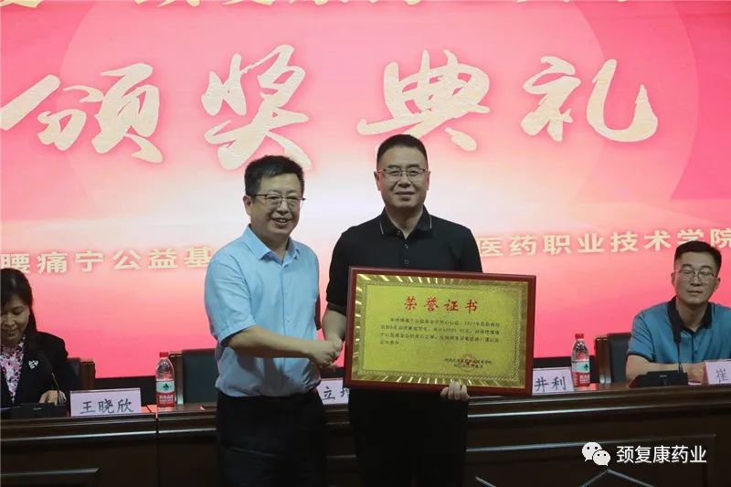 河北化工職業(yè)技術(shù)學(xué)院副院長李立曾、石家莊醫(yī)學(xué)高等專業(yè)學(xué)校副校長朱太平在各自學(xué)校的頒獎儀式上,分別對頸復(fù)康藥業(yè)集團及承德腰痛寧公益基金會多年來對學(xué)校人才培養(yǎng)工作的支持與慷慨捐贈表示衷心的感謝,對獲獎學(xué)生表示祝賀并提出了殷切希望。
